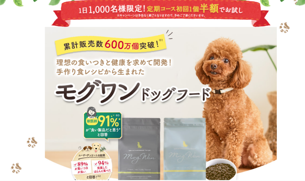 モグワンドッグフードは、ヒューマングレードの原材料を使用したプレミアムドッグフードとして、多くの飼い主から支持されている人気商品です。
