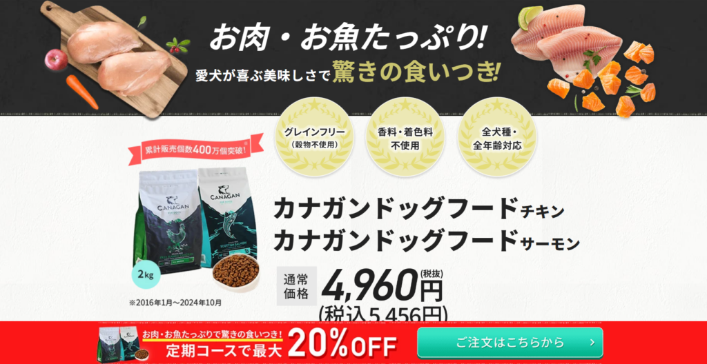 カナガンは、特に「タンパク質重視」の方におすすめのフードです。体づくりや健康維持を意識した設計となっており、活動的な犬に適しています。