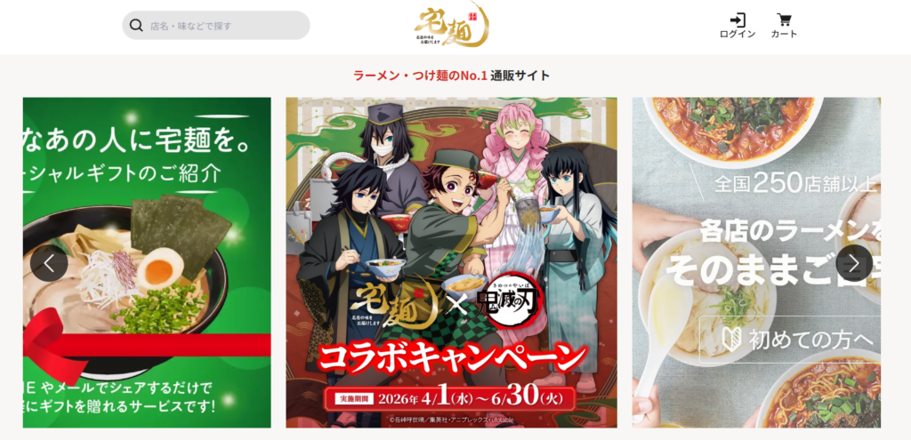 宅麺.comは、日本全国の有名ラーメン店の味を自宅で楽しめる通販サービスとして、多くのラーメンファンから支持されている人気サイトです。最大の特徴は、その圧倒的なラインナップ数。二郎系・家系・つけ麺・煮干し系など、さまざまなジャンルのラーメンを取り扱っており、「食べ比べ」を楽しみたい方には特におすすめです。