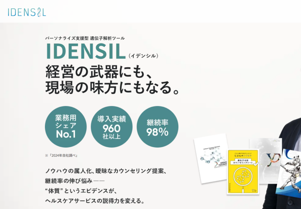 IDENSILは、自分の体質を知ることを目的として利用できる遺伝子検査サービスです。ダイエット体質だけでなく、生活習慣改善の参考情報として活用できる点が特徴です。